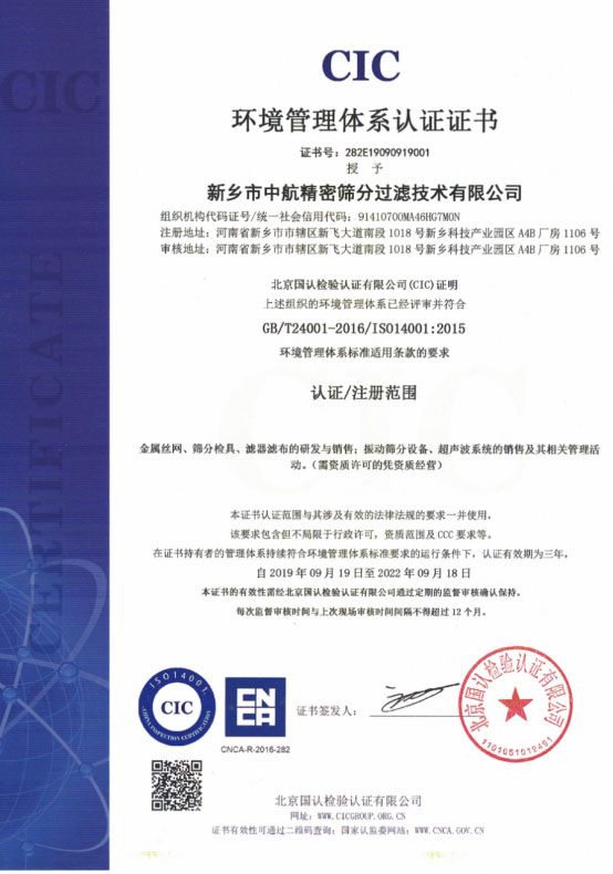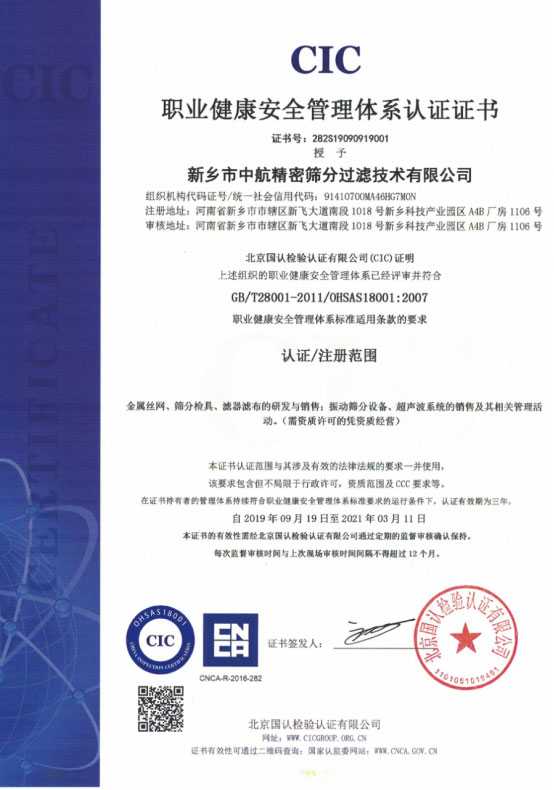 新乡市中航精密筛分过滤技术有限公司,前身是成立于2002年的新乡市中航机械滤材有限公司,我们依托于军工企业的优势,在高精度筛分行业深耕了近20年, 在筛网品控上有独到的技术和优势,尤其近10年来,我们在服务客户的过程中,结合客户的实际需求,在筛网和振动设备的配套中积累了大量经验, 能针对客户在生产中遇到的各种问题,提出精准有效的解决方案,从超声波振动设备到筛网,一站式解决客户的生产问题,尤其注重售后服务和技术问题解决, 为客户的增产降本贡献了自己的智慧和力量。